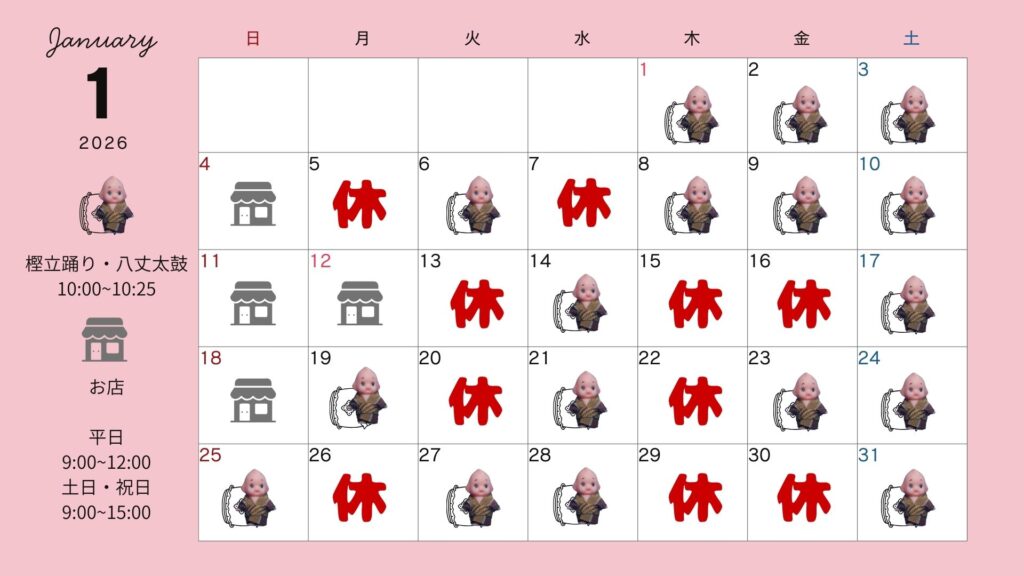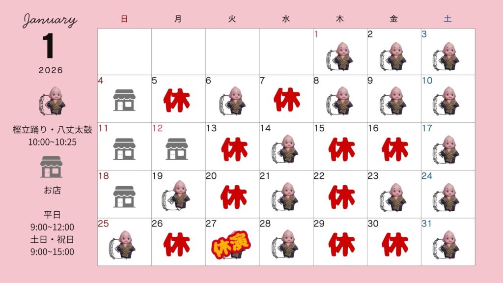 樫立踊り・八丈太鼓 カレンダーは、予定が決まったものを掲載しております。当日いらっしゃてもお席は十分にございます。また、悪天候よる欠航等により急に休演となることもございますので、当日ご確認をお願いします。 FacebookXBlueskyHatenaCopy